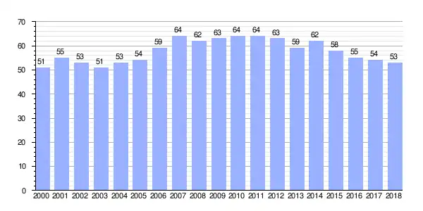 Gráfica de evolución demográfica de Corredoiras entre 2000 y 2018 |