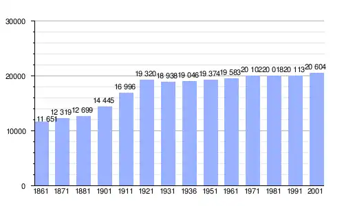 Gráfica de evolución demográfica de Correggio entre 1861 y 2001 |