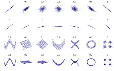 La medida clásica de dependencia, el coeficiente de correlación de Pearson,[1] es principalmente sensible a una relación lineal entre dos variables. La correlación de la distancia fue introducida en 2005 por Gábor J. Székely en varias conferencias para tratar esta deficiencia de la correlación de Pearson, a saber, que puede ser fácilmente cero para variables dependientes. La correlación = 0 (no correlacionada) no implica independencia, mientras que la correlación de la distancia = 0 implica independencia. Los primeros resultados sobre la correlación de la distancia se publicaron en 2007 y 2009.[2][3] Se demostró que la covarianza de la distancia es la misma que la covarianza browniana.[3] Estas medidas son ejemplos de distancias de la energía.