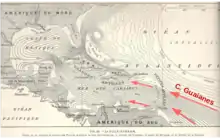 Se deduce de las observaciones hechas por Pillsbury (1889, 1890) que el 70% del volumen total de agua transportada al mar Caribe proviene de la corriente de la Guayana[3][4]