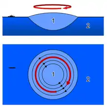 En este caso, si configuramos Hemos revertido a las ecuaciones geostróficas anteriores. Por lo tanto, una corriente geostrófica se puede considerar como una onda de agua superficial en rotación con una frecuencia de cero.