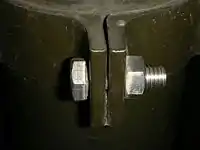 Acero inoxidable. El uso más habitual del acero inoxidable en contacto con acero galvanizado es en forma de tornillos y tuercas en condiciones de exposición a la atmósfera (Fig. 4). Este tipo de uniones no suelen ser muy problemáticas, debido al bajo par galvánico que se establece entre ambos metales y a la elevada relación superficial entre el metal anódico (acero galvanizado) y el catódico (acero inoxidable). No obstante, en medios de elevada conductividad (humedad elevada o inmersión en agua) es recomendable disponer un aislamiento entre las superficies en contacto de ambos metales (p.e. arandelas de plástico o neopreno y casquillos o cintas aislantes).