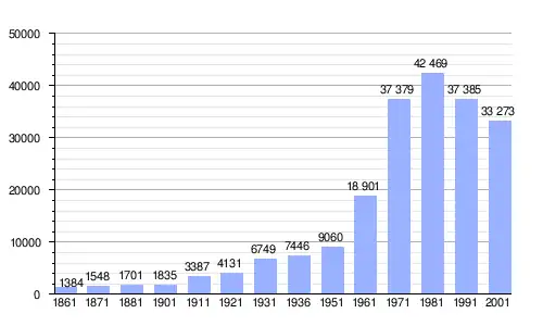Gráfica de evolución demográfica de Corsico entre 1861 y 2001 |
