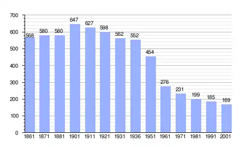 Gráfica de evolución demográfica de Corsione entre 1861 y 2001 |