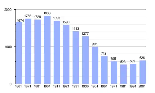 Gráfica de evolución demográfica de Cortazzone entre 1861 y 2001 |