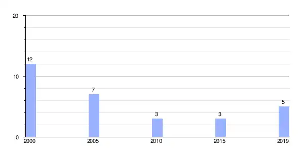 Gráfica de evolución demográfica de Cortes entre 2000 y 2019 |