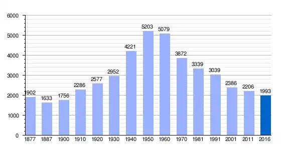 Gráfica de evolución demográfica de Cortes de Baza entre 1877 y 2016 |