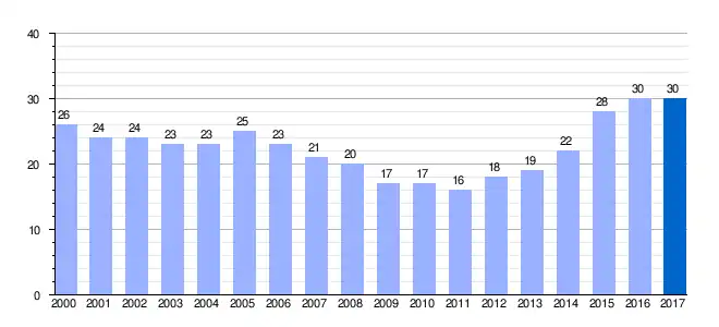 Gráfica de evolución demográfica de Cortos de la Sierra[2] entre 2000 y 2017 |