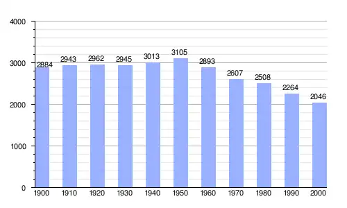 Gráfica de evolución demográfica de Corvera de Toranzo entre 1900 y 2000 |