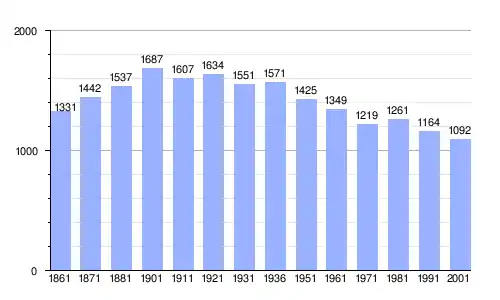 Gráfica de evolución demográfica de Corvino San Quirico entre 1861 y 2001 |