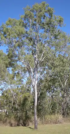 Corymbia tessellaris ( sin. Eucalyptus tessellaris), carbeen, fresno de Bahía Moreton (Moreton Bay ash), tocón negro (black butt).
