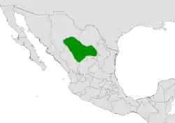 Endémica de Chihuahua, Coahuila y Durango en México. Habita en planicies y en matorrales xerófilos sobre suelos aluviales.[4][1]