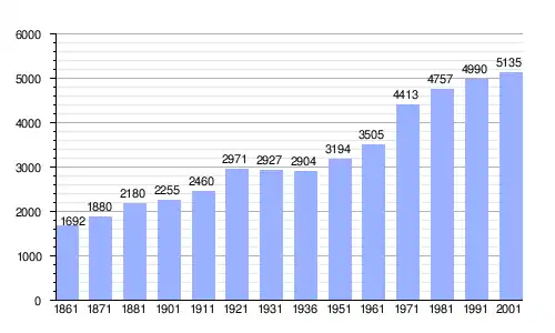Gráfica de evolución demográfica de Cosio Valtellino entre 1861 y 2001 |