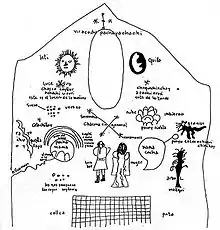- Hanan Pacha o el mundo de arriba celestial y supraterranal (dioses como el sol, la luna, el rayo, las estrellas, el Arco Iris)