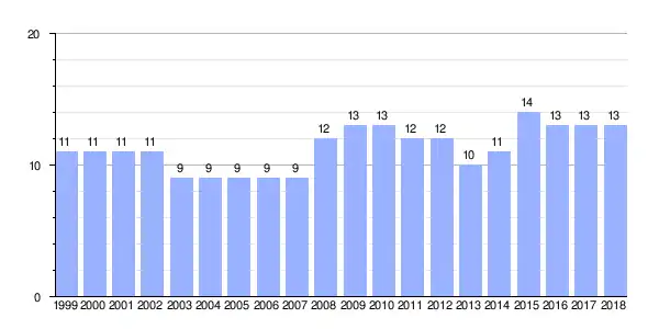 Gráfica de evolución demográfica de Costa entre 1999 y 2018 |