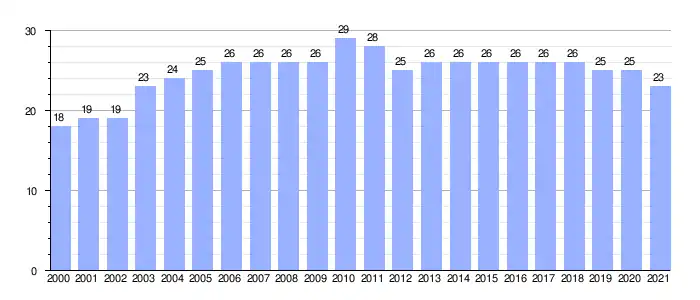 Gráfica de evolución demográfica de Costa entre 2000 y 2021 |