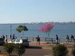 La costanera, el río Paraná, y del otro lado la ciudad de Encarnación (Paraguay).