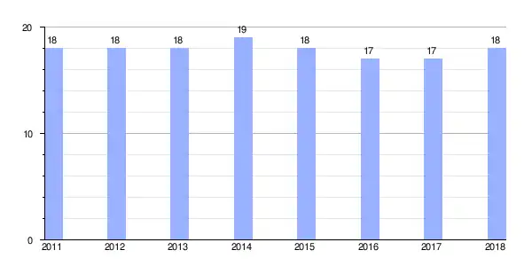 Gráfica de evolución demográfica de A Costiña entre 2011 y 2018 |