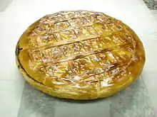 Está formada por varias capas de carne (pollo, lomo y jamón habitualmente), o pescado y marisco (rodaballo y vieiras), separadas por una masa especial. Es un producto relativamente caro por los ingredientes y la dificultad de la elaboración y la lentitud de la preparación.