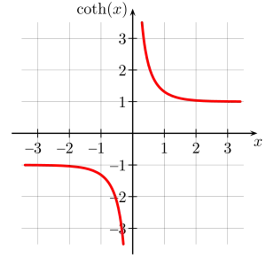 En trigonometría, la cotangente hiperbólica de un número real , es una función hiperbólica definida como la inversa de la tangente hiperbólica. Se simboliza o y matemáticamente se sintetiza: