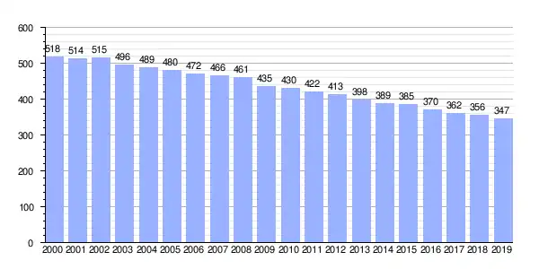 Gráfica de evolución demográfica de Coucieiro entre 2000 y 2019 |