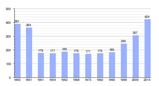 Los datos demográficos contemplados en este gráfico de la comuna de Coulombs[4] se han cogido de 1800 a 1999 de la página francesa EHESS/Cassini, y los demás datos de la página del INSEE.[5]