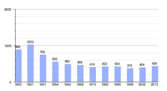 Los datos demográficos contemplados en este gráfico de la comuna de Coulonges-les-Sablons[4] se han cogido de 1800 a 1999 de la página francesa EHESS/Cassini, y los demás datos de la página del INSEE.[5]