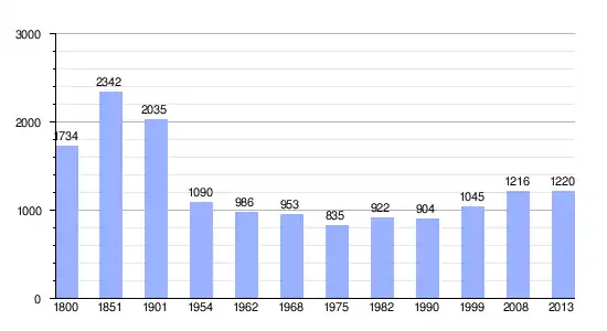 Gráfica de evolución demográfica de Coux-et-Bigaroque-Mouzens entre 1800 y 2013 |