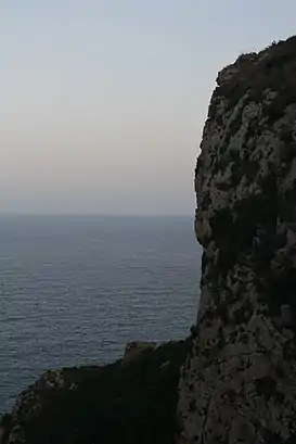 ![]() Vista del mar desde la entrada de la Cova de la Cendra (Teulada-Moraira) | ||