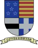 El escudo de armas de este apellido fue descrito por primera vez en 1592 por A. Sales, de acuerdo con el Libro de armoria.[1] Esta descripción corresponde al escudo que usó una rama de la familia que, en dos generaciones, se trasladó a vivir desde la villa de Covarrubias a la localidad alicantina de Cocentaina. De hecho, presumiblemente el primer Covarrubias en usar este escudo fue el caballero don Diego de Covarrubias Sanz, natural de Cocentaina, quien en 1590 tuvo que presentar su árbol genealógico para entrar en el Santo Oficio. El abuelo paterno de este, un tal Hernando de Cobarrubias, era natural de la propia villa de Cobarrubias.[6] Por lo tanto, este don Diego, que usó este escudo, fue el primer Covarrubias nacido en Cocetaina, y su escudo lo podrían usar sus descendientes.