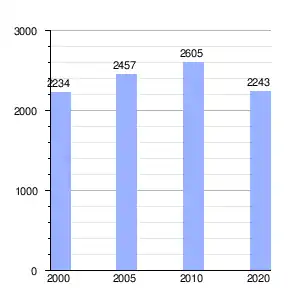 Gráfica de evolución demográfica de Coxcatlán entre 2000 y 2020 |
