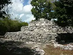 Esta es la mayor de las estructuras del sitio. Se cree que este edificio ocupó el centro de un posible templo a la diosa Ix Chel. En la parte posterior del edificio se encuentra un cenote (de los varios que existen en el yacimiento), que se piensa sirvió de fuente de agua potable para la población.