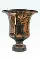 - Estilo: Crátera de tipo cáliz con pintura vascular suritálica.