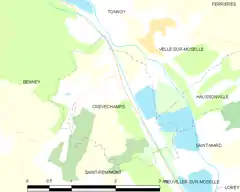 Crévéchamps es una población y comuna francesa, en la región de Lorena, departamento de Meurthe y Mosela, en el distrito de Nancy y cantón de Haroué.