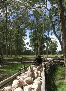 Los granjeros australianos suelen reunir a todas las ovejas hembra para que den a luz (la llamada estación del parto) en un periodo de varias semanas, que suele ser a principios del otoño. Como las hembras a veces rechazan a los corderos recién nacidos, sobre todo después de un parto doble o triple, es importante minimizar los contratiempos durante este periodo. Con objeto de atender los partos, vacunar a los corderos y protegerlos de los depredadores, los pastores harán que las hembras den a luz en cobertizos de paritorio, que consisten en un establo (a veces una estructura provisional construida en medio del pasto) con compartimentos individuales para cada hembra y su(s) retoño(s).