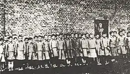 Los hijos de trabajadores forzosos fueron maltratados en Ausländerkinder-Pflegestätte, donde murieron miles de ellos.[126] Un campamento para niños y adolescentes, Polen-Jugendverwahrlager der Sicherheitspolizei en Litzmannstadt, funcionó de 1943 a 1944 en Łódz, con un subcampo para niñas en Dzierżązna, Voivodato de Łódź.