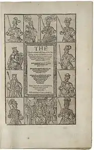 - Esta obra contiene una traducción derivada de «Holinshed's Chronicles» de Wikipedia en inglés, publicada por sus editores bajo la Licencia de documentación libre de GNU y la Licencia Creative Commons Atribución-CompartirIgual 3.0 Unported.