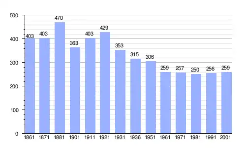 Gráfica de evolución demográfica de Crandola Valsassina entre 1861 y 2001 |