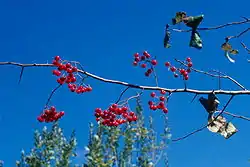 En general, se cultiva como planta ornamental, y puede alcanzar los 10 m de altura. Produce una pequeña baya roja como fruto crecen en grandes grupos y son alimento para las ardillas y pájaros. Tienen un sabor suave y se puede comer crudo o cocido. Al igual que con otras especies de espino blanco, la madera es dura y puede ser utilizada para hacer herramientas .