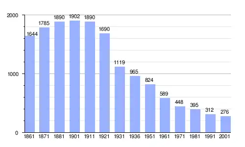 Gráfica de evolución demográfica de Cravagliana entre 1861 y 2001 |