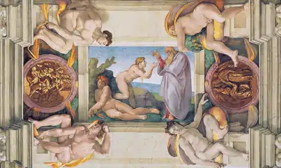 La creación de Eva es el quinto de los frescos realizados por Miguel Ángel en la bóveda de la Capilla Sixtina.