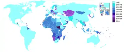 - «Crecimiento de Número de Estados Miembros de las Naciones Unidas, desde 1945 al presente». Nueva York: Organización de las Naciones Unidas. Consultado el 23 de diciembre de 2016.
