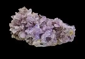 Se ha encontrado en las porciones superiores de los filones de barita-fluorita, dentro de las masas graníticas.