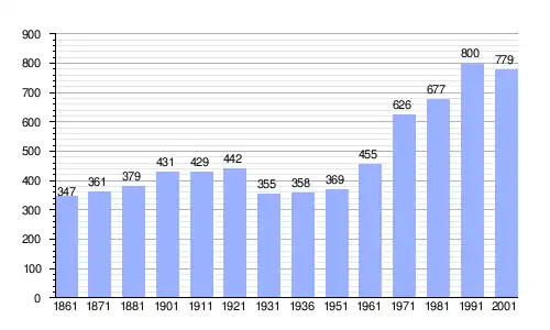 Gráfica de evolución demográfica de Cremenaga entre 1861 y 2001 |