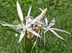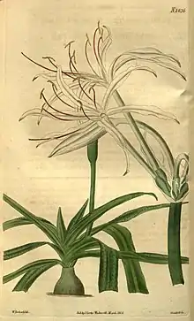 Crinum: nombre genérico que deriva del griego: krinon = "un lirio".[5]