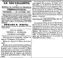 Charles Gayarré...y Alcée Fortier... lideraban la honesta aunque desesperada defensa del criollo. Tan brillantes como eran sin duda estos hombres, fueron igualmente absorbidos en el intento de proceso de reclasificación para salvaguardar el estatus de los criollos blancos. Sus discursos en consecuencia se leían más como elegías llenas de compasión que como un análisis histórico.[19]