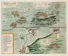 Wesel, Rheinberg y Orsoy. Fortalezas en poder español hasta que fueron ocupadas por Federico Enrique de Orange-Nassau en 1629, 1633 y 1632.[19]