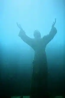 La estatua, de unos 2,50 m de altura, fue construida por el escultor Guido Galletti, colocada por la Marina Militare a unos 17 metros de profundidad, y llevada hasta el fondo por muchos buceadores. Las manos del Cristo, dirigidas hacia la superficie (o hacia el cielo, ya que se trata de una estatua bajo el agua), se encuentran en signo de paz.
