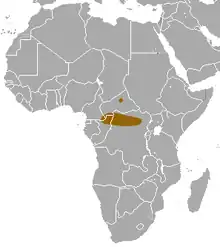Vive en el Camerún, en la República Centroafricana y en la República del Congo.