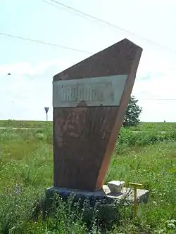 ![]() Monumento en la carretera nacional R30 junto al acceso al pueblo.